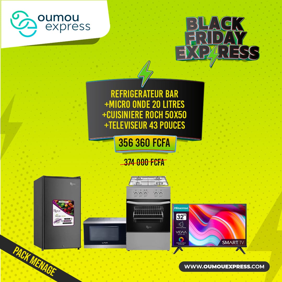 REFRIGERATEUR BAR +MICRO ONDE 20 LITRES +CUISINIERE ROCH 50X50 +TELEVISEUR 43 POUCES