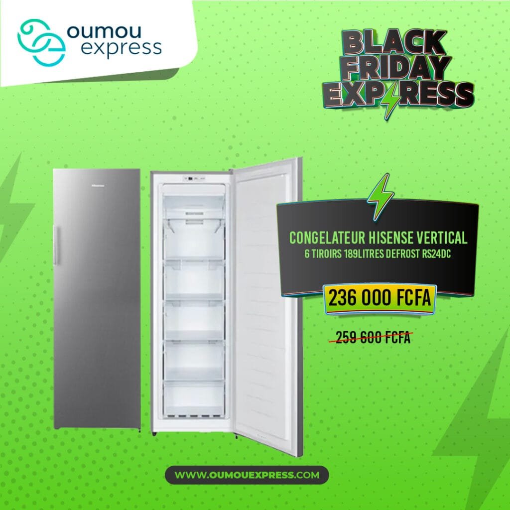 Congélateur Vertical 6 tiroirs HISENSE RS-24DC Type de Tiroirs : 5 Plaque Alu, 1 grillage, 1 verre Capacité nette: 189 LITRES Classe climatique: 32-18 degrés Contrôle de la température: mécanique Modèle de réfrigération: sans givre Dimension d’emballage (W * D * H): 580 * 580 * 1482 Dimension nette (I * P * H): 550 * 542 * 1436 Poids de l’emballage: 49…CUISINIERE 4 FEUX 50X50 + MICRO ONDE LAVA 20 LITRE +TELEVISEUR 43 POUCES