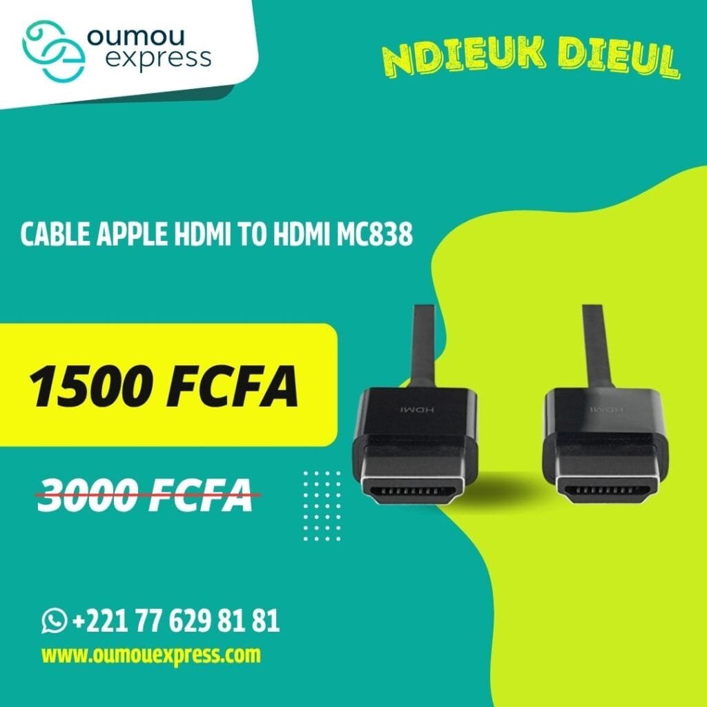 Le câble Apple HDMI to HDMI MC838 permet de connecter un appareil compatible HDMI, comme un Apple TV ou un Mac mini, à un téléviseur ou un récepteur audio-vidéo. Il transmet à la fois la vidéo numérique haute définition et l’audio multicanal sur un seul câble, assurant une qualité optimale d’image et de son.