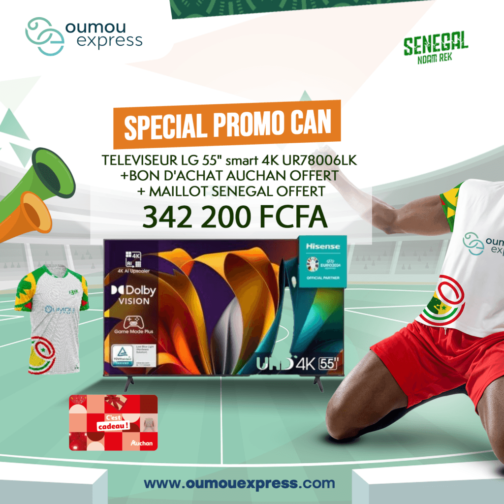 TELEVISEUR LG 55″ smart 4K UR78006LK +BON D’ACHAT AUCHAN OFFERT + MAILLOT SENEGAL OFFERT