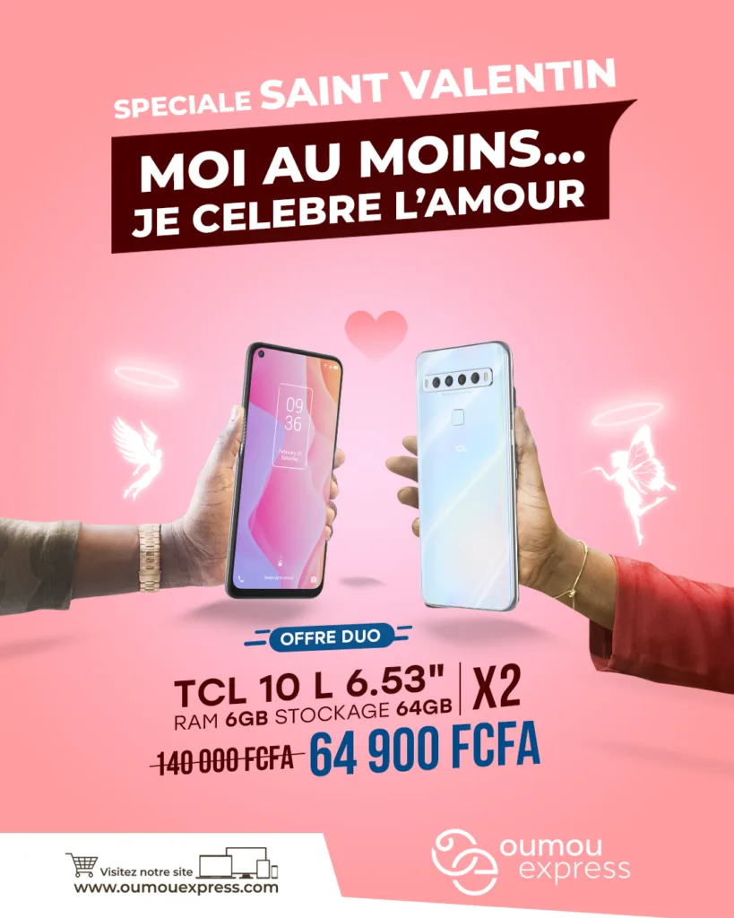 Célébrez l'amour avec cette promotion exceptionnelle d'Oumou Express. Pour le prix d'un seul téléphone, vous repartez avec deux appareils pour rester connecté avec votre partenaire.