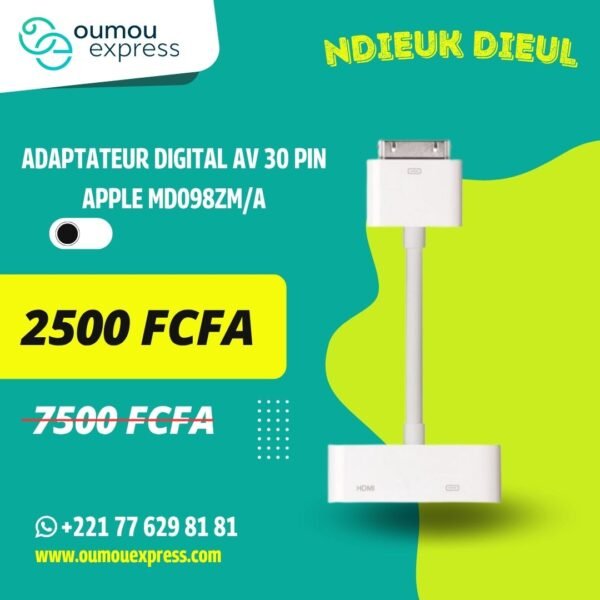 Accueil | Boutique | PromoPico 2025 | ADAPTATEUR Digital AV 30 PIN APPLE MD098ZM/A