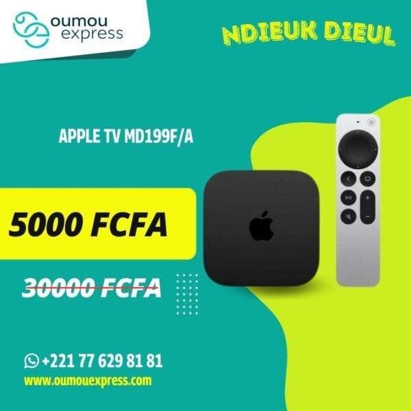 Le Apple TV MD199F/A est un boîtier multimédia compact conçu pour connecter votre télévision à l’écosystème Apple et aux services de streaming. Il permet de lire des vidéos, de la musique et des photos depuis des appareils Apple via AirPlay ou directement depuis des services compatibles.