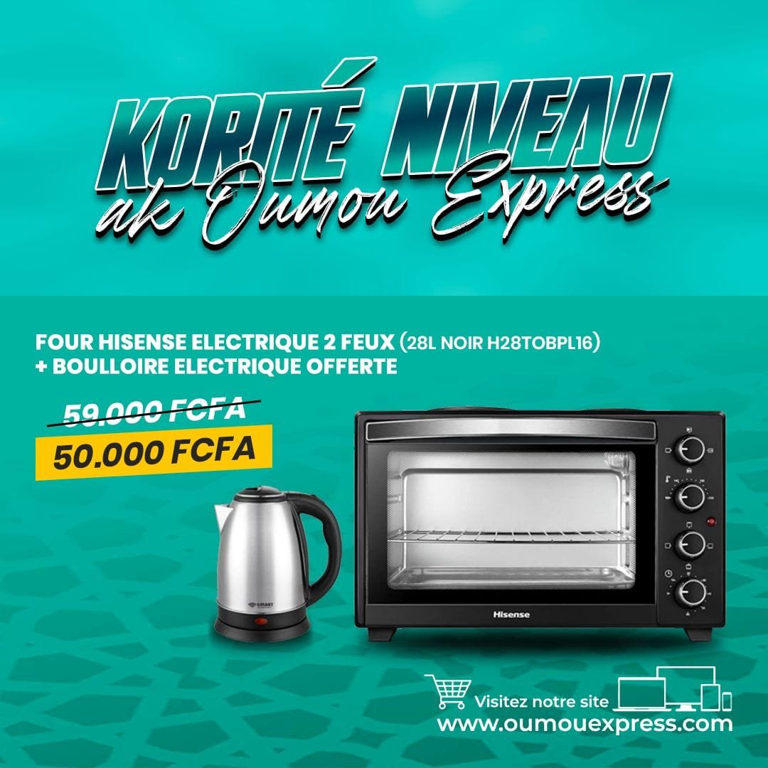 Accueil | Boutique | Ramadan2026 | Korite niveau | FOUR HISENSE ELECTRIQUE 2 FEUX (28L NOIR H28TOBPL16) + BOULLOIRE ELECTRIQUE OFFERTE